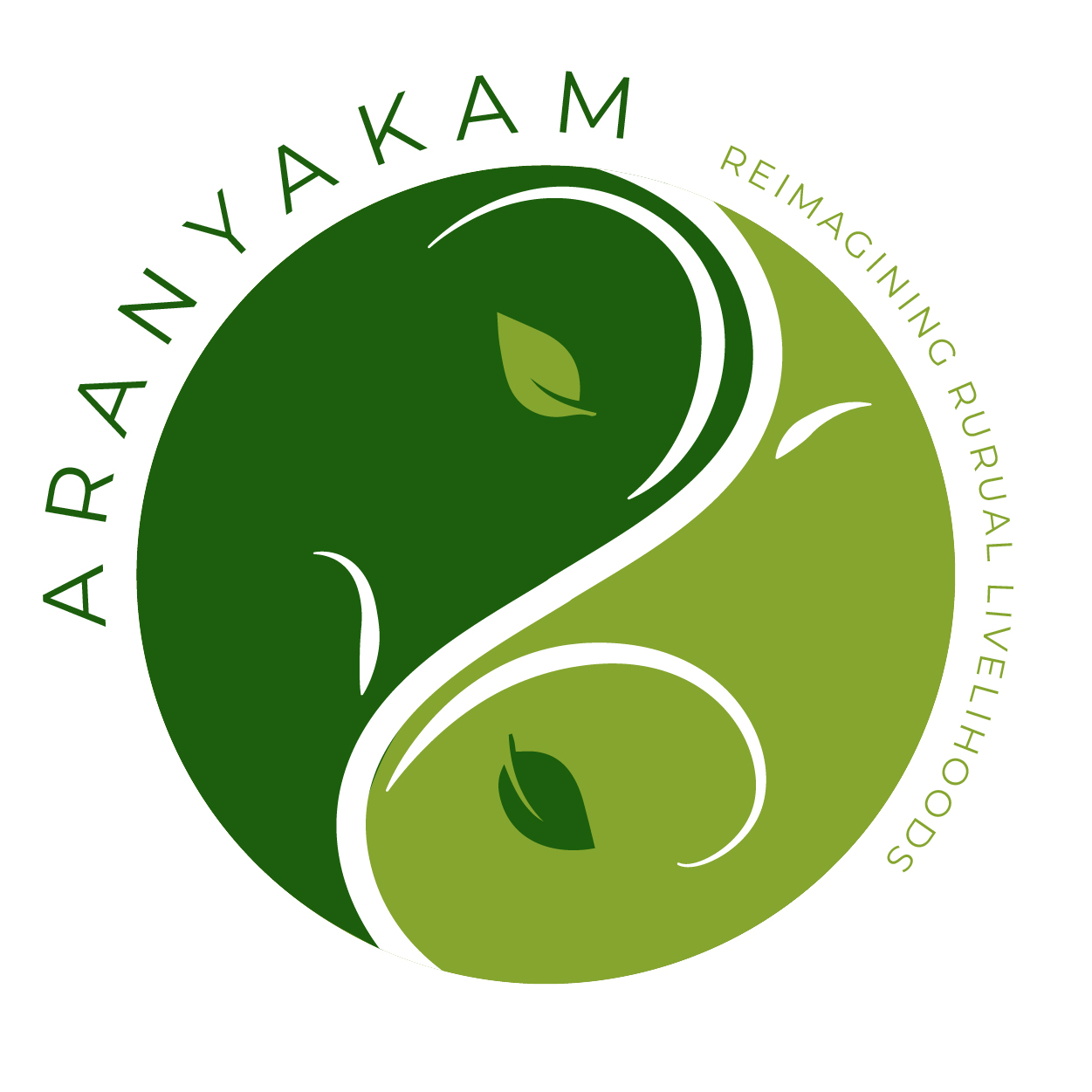 This emblem symbolizes balance and harmony, reflecting Aranyakam's commitment to sustainable agriculture, economic empowerment, and global connectivity. The design communicates the brand's dedication to fostering a symbiotic relationship between nature, commerce, and community, making it an emblem of seamless growth and fairness.